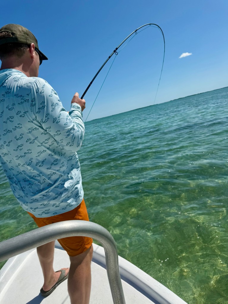 We spent a long time stalking for tarpon. Waiting. Watching. Trying to stay ready. Then finally, the chance came. I put a cast toward the fish, stripped, and missed the hookup. Heart racing, I got another shot. Recast. Strip.