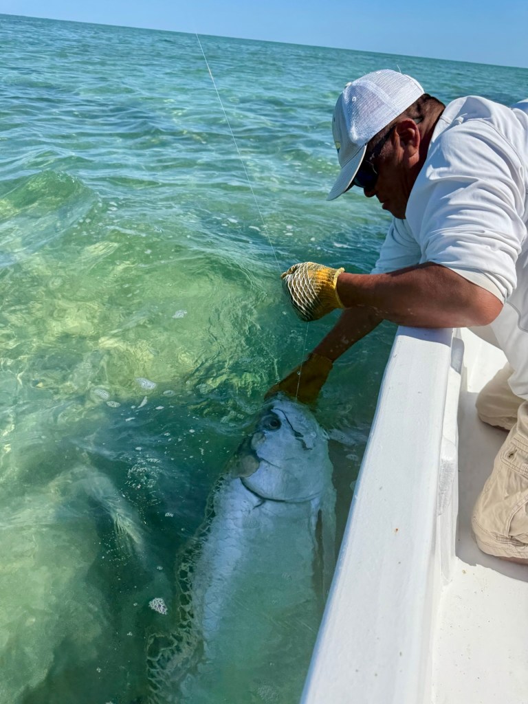 When we finally got the tarpon alongside the boat, the scale of it was hard to process. An immense fish, all chrome and muscle. Parnell estimated it at around 80lb, and it was without doubt one of the most incredible fish I have ever caught — the kind of fish you dream about, and the kind of moment that stays with you forever.
