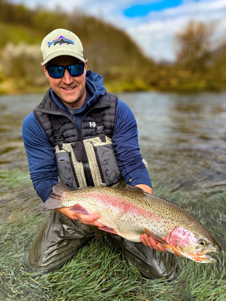 Little did I know that the next morning – on the third drift through a shallow run – i would land an even bigger fish. An enormous, old, wild rainbow trout complete with battle scars. My mind was truly blown and my hands were shaking!